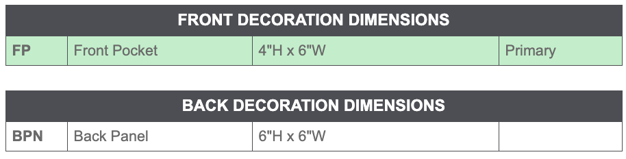 LOGO fits 8”x6” area (one-time logo fee +65$)